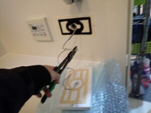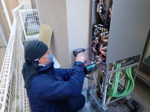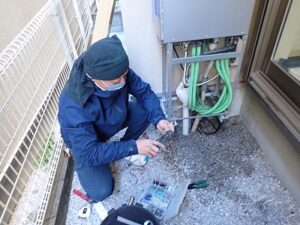 リンナイ熱源付きスリムタイプエコジョーズ給湯器にリモコン配線を接続します