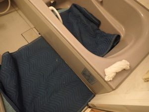 お風呂の床を養生します