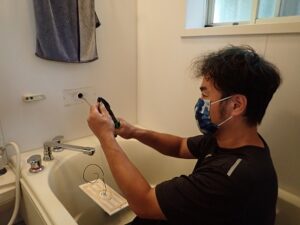 お客さまと一緒に水漏れ・ガス漏れ確認中です