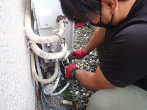 お湯・水・追い炊き・ガス配管を新しいリンナイ給湯器に接続します