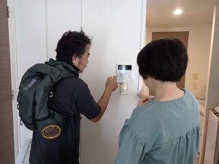 お客さまと一緒に水漏れ・ガス漏れ確認中です