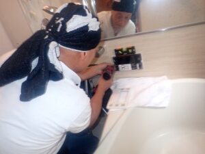 お風呂の床を養生します