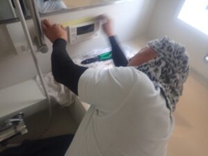 お客さまと一緒に水漏れ・ガス漏れ確認中です