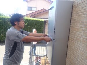それでは既存のリンナイ給湯器より配管カバーを取り外します