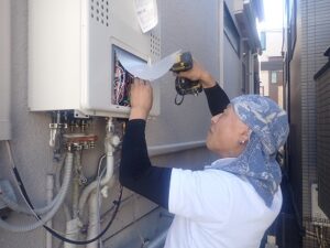 既存のノーリツエコジョーズTES給湯器・熱源付き給湯器を撤去します