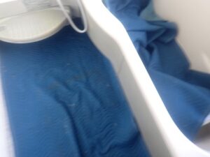 既存のお湯・水・追い炊き配管の接続口のパッキンを取り外します