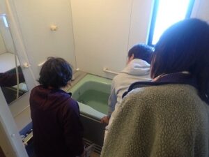 お客さまと一緒に水漏れ・ガス漏れ確認中です