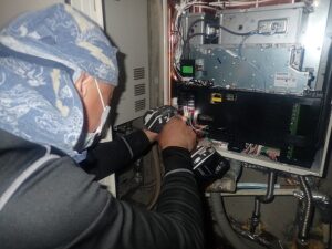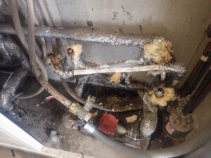 お客さまと一緒に水漏れ・ガス漏れ確認中です