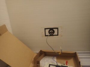 浴室リモコンの水平を確認してビスで浴室リモコンを固定します