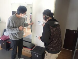 お客様に床暖房リモコンの使い方の説明中です