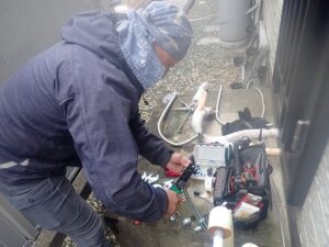 新しいリンナイ給湯器にお湯・水・ガス・追い焚き配管を接続します