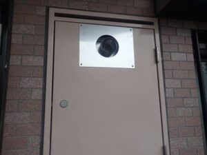 パイプスペースの扉を閉めて給湯器交換工事完了になります