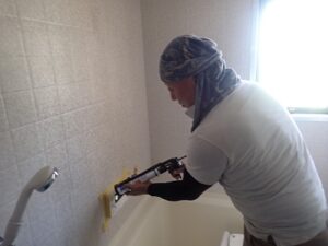 一応、外の給湯器部分の防水のコーキングを打ちます