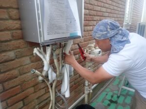 新しいリンナイエコジョーズ給湯器を取り付けます