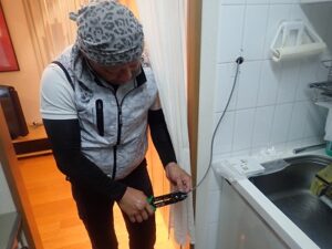 お客様と一緒に水漏れ、ガス漏れを確認中です。
