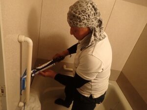 お客様と一緒に水漏れ、ガス漏れを確認中です。