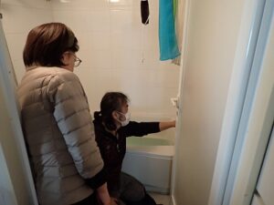 お客様と一緒に水漏れ、水漏れを確認中です。
