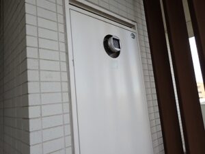 パイプスペースの扉を閉めて、給湯器交換工事完了になります