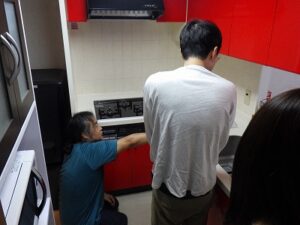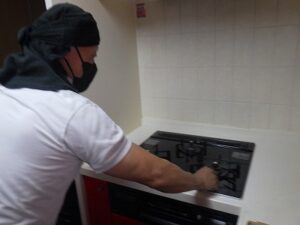 コンロの点火試験をしてガス漏れ確認をきちんとガス漏れ検知器で確認します