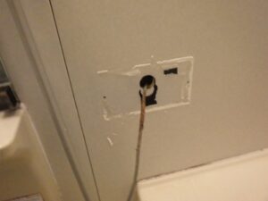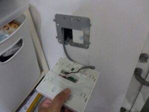 今回は雨が降っているので、先に室内のリモコンから交換をしております。