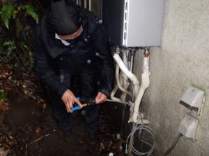 ガス漏れ確認をガス漏れ検知器できちんと確認します
