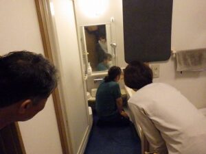 お湯、水、ガス・追い焚きリ・モコン配線などを取り外していきます。