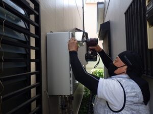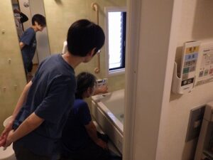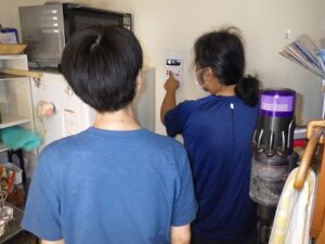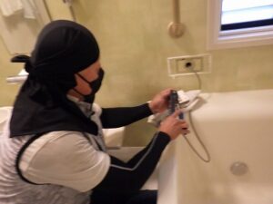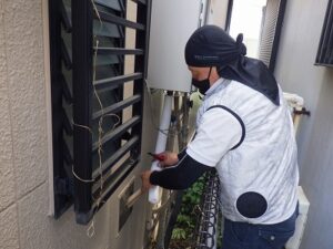 お客様と一緒に水漏れ・ガス漏れを確認中です。