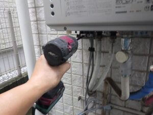 既存のノーリツエコジョーズ給湯器を壁より取り外します