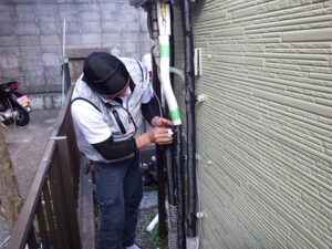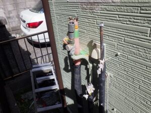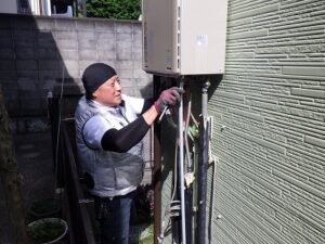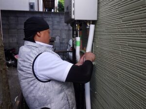 既存のリンナイエコジョーズ給湯器を壁を取り外します