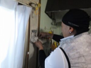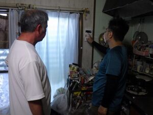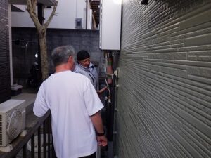 お客様と一緒に水漏れ、ガス漏れを確認中です。