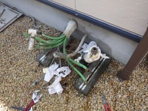 既存のガスター・東京ガスTES・熱源付き給湯器を据え置き台より取り外します