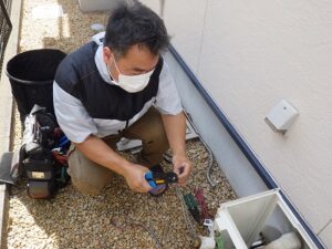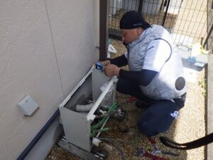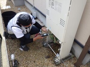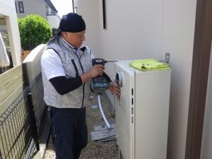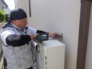ガス漏れ確認をガス漏れ検知器できちんと確認します