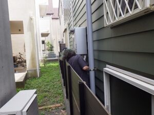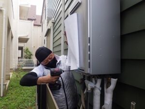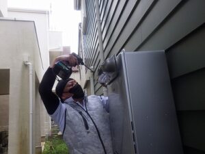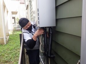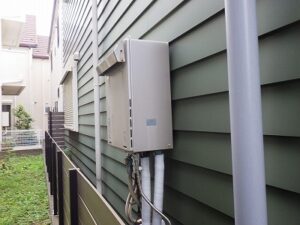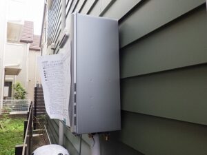 新しいリンナイエコジョーズ給湯器を壁に取り付けます