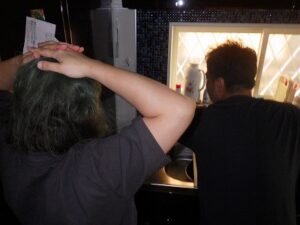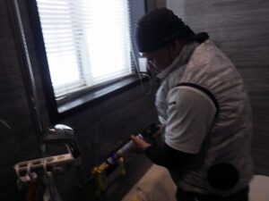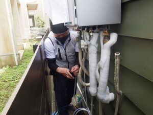 お客様と一緒に水漏れ、ガス漏れを確認中です。