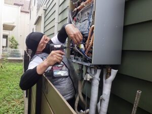 排気変更部材をリンナイエコジョーズ給湯器に取り付けます