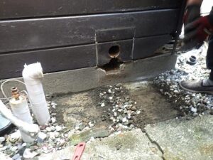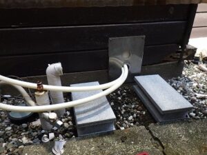 今回はブロックを置いてその上に給湯器を据え置く準備をします
