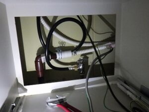 既存の食洗機より給水や排水を取り外していきます