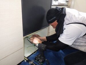 食洗機の前面の部材を取り外していきます