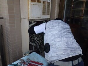 既存の松下TES・熱源付き給湯器を壁より取り外します