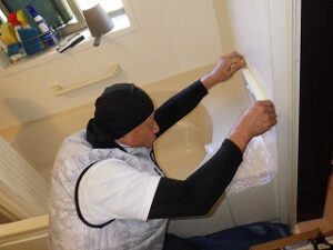 お風呂の床を養生します