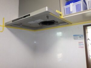 キッチンとレンジフードの間の部分にマスキングテープを取り付けます
