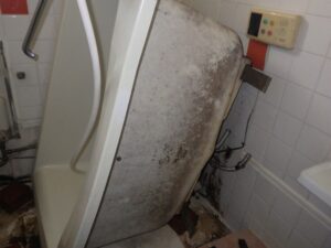 お湯、水、ガス・追い焚き配管、リモコン配線などを取り外していきます