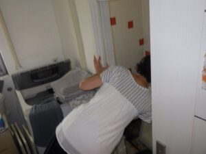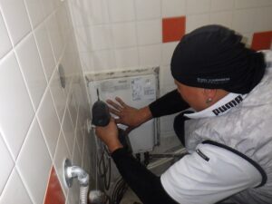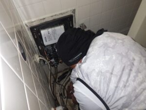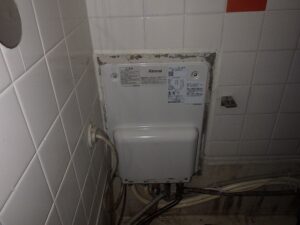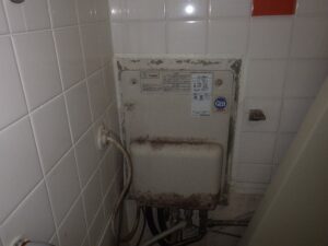 既存の貫通型給湯器を取り外します