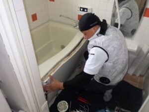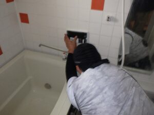 浴槽の水栓にお湯・水配管を接続します