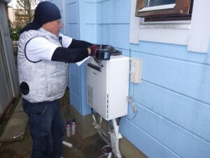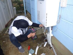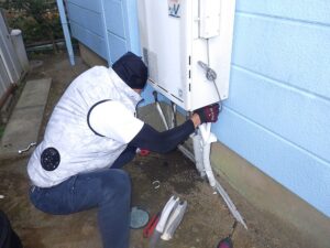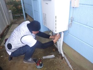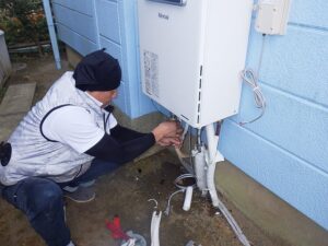 リンナイ給湯器にお湯、水・ガス・追い焚き配管を接続します