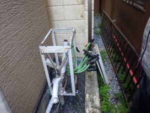 既存の東京ガス・パーパスTES・熱源付きエコジョーズ給湯器を据置台より取り外します