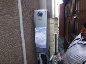 リンナイTES・熱源付きエコジョーズ給湯器の全面パネルを取り付けます