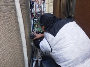 リンナイTES・熱源付きエコジョーズ給湯器にリモコン配線を接続します