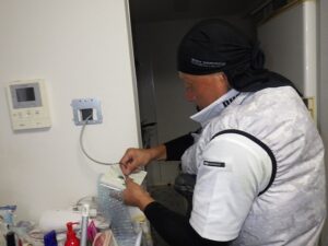 ガス漏れ確認をガス漏れ検知器できちんと確認します