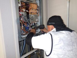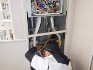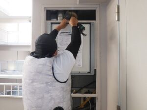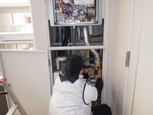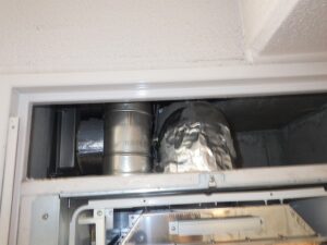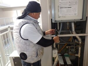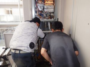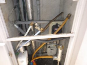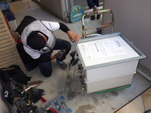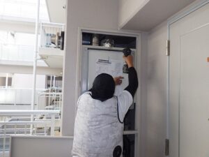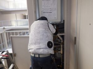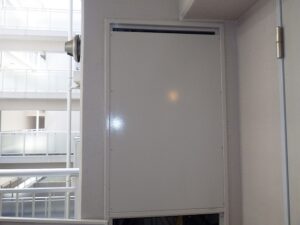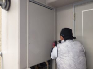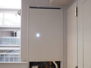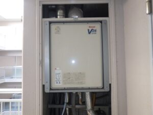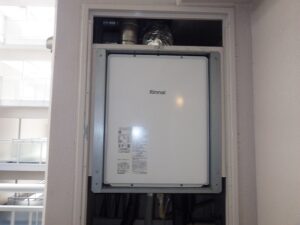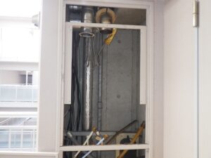 パイプスペースにリンナイ上方排気給湯器を設置します